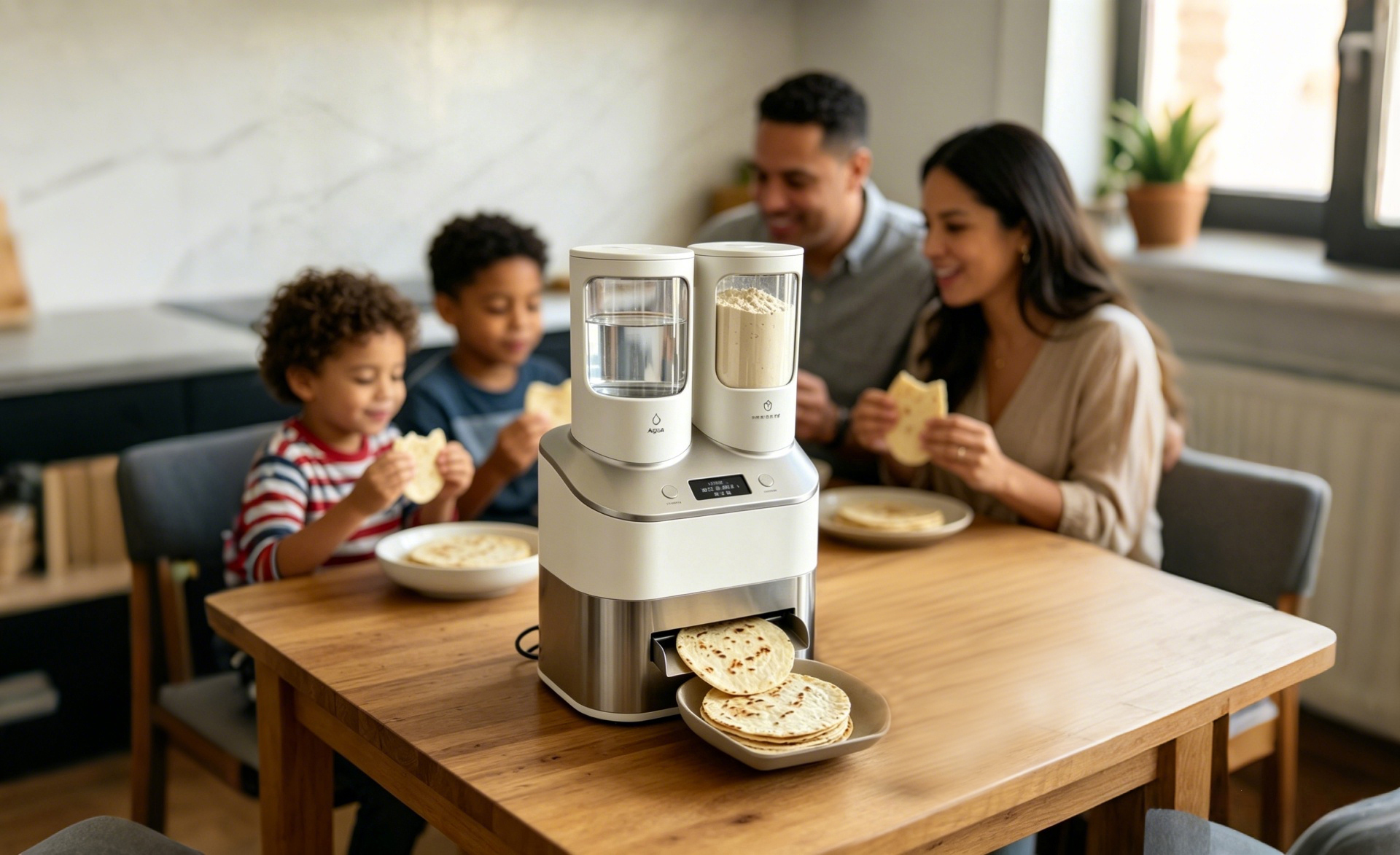Finished thin pancakes are automatically ejected for a hands-free experience.