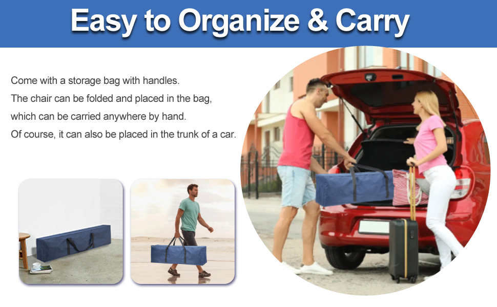 The chair folds into a compact 34'' × 12'' carry bag and weighs 18.5 lbs (8.4 kg), making it easy to transport and store. The carry bag features padded shoulder straps for convenient transport to campsites, sporting events or the garden.